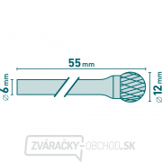 Doplňujúce parameter: priemer frézy 12mm, priemer stopky 6mm, celková dĺžka 55mm, materiál volfrám karbid, tvrdosť 89-91HRA