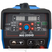 Synergická zváračka MIG 200HD sa používa na ručné zváranie ocele a neželezných kovov. Umožňuje zváranie M MA (potiahnutá elektróda), TIG Lift a MIG/MAG v synergickom a manuálnom režime. Vďaka zmene polarity umožňuje zariadenie zváranie metódou MIG/MAG pomocou štandardných vodičov v ochrannom plynovom tienení aj samostatne tienených drôtov s tavivom. Zariadenie umožňuje pripojiť cievku s mini podávačom drôtu av ňom nainštalovanú oceľovú alebo farebnú cievku drôtu. Nastavenie indukčnosti umožňuje spájkovanie tenkých pozinkovaných prvkov. Zváračka môže pracovať v synergickom alebo manuálnom režime s možnosťou rýchleho návratu k pôvodnému synergickému nastaveniu. Zariadenie má vstavané automatické funkcie HOT START a ANTI STICK.