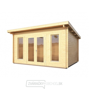 Luxusný masívny záhradný domček. Prednosťou tohto modelu výrazné presklenie čelnej steny - celkom 4 veľké okná osadené klasickým sklom (žiadny plast). Domček má pultovú strechu. Stavebným materiálom domčeka sú profily hrúbky 7 cm perfektne vyfrézované zo severského smreka. Dodávame ako stavebnicu v rozloženom stave, kde s stenami tvoria jednotlivé drevené profily, ktoré iba zosadíte k sebe a zoskrutkujete, strechu tvorí celistvá doska hrúbky 20 mm. To garantuje extrémne jednoduchú montáž, ktorú zvládne každý domáci majster.