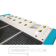 - Stôl: Plocha stola je vyrobená z gumy, opatrená drážkami pre vedenie podtlaku. Vďaka tomu sa spracovávaný materiál prichytí priamo k stolu (bez použitia úpiniek). Stôl je rovnomerne rozdelený na niekoľko segmentov, ktoré je možné samostatne uzavrieť. Zvýši sa tak podtlak v pracovnej časti, ktorú je možné ešte vymedziť tesniacou gumou vloženou do drážky. Druhou možnosťou upnutia materiálu je T-drážka, ktorá slúži na uchytenie materiálu úpinkami alebo pripevnenie rôznych prípravkov.