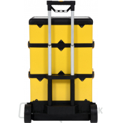 Trojdielny mobilný vozík na uloženie drobného náradia a príslušenstva. Vyrobený z ABS plastu s rozmermi 57 x 37x 84,5 cm a odolného proti mechanickému poškodeniu a poškriabaniu.Na vrchnej časti sa nachádza oceľová doska, ktorá je vhodná ako pracovné miesto.Členité úložné priestory umožňujú organizáciu rôznych typov príslušenstva a uľahčujú udržiavanie poriadku.Jednotlivé otvárateľné časti sú chránené pred neúmyselným otvorením pomocou robustných spôn.