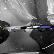 Permanentný popisovač schopný značiť dlaždice, plast, drevo aj kov. Úzka a robustná tuha s rýchloschnúcim atramentom. Ideálne pre bežné remeselnícke práce . Dostupná v 3 farbách.