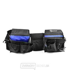 Opasok so sadou troch vreciek na náradie vyrobený z odolného plastového materiálu odolného proti oderu. Má celkom 10 vreciek , ktoré vám umožnia pohodlne prenášať rôzne druhy náradia a príslušenstva ako sú skrutky, klince, skrutky atď. Jedna z vreciek je navyše vybavená integrovaným držiakom na kladivo.