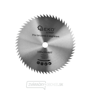 Kotúč pílový GEKO, 350x32x60T je pílový kotúč je určený na spracovanie mäkkého a tvrdého dreva, dreva z priečnych vlákien, drevotrieskových dosiek a tesárskych výrobkov. Starostlivo spájkované karbidové indukčné zuby s pravým uhlom sklonu zaisťujú, že ostrie zaručuje rýchle a presné rezanie. Tienenie je vybavené otvormi pre vynikajúce chladenie, čím sa zabraňuje prehriatiu materiálu ešte viac.
