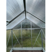 Balenie obsahuje jednokrídlové dvere na pántoch (š x v = 0,61 x 1,64 m), AL profily, zasklenie, oceľový pozinkovaný podstavec, 1x strešné vetracie okno s ručným otváraním, všetok spojovací materiál. K skleníku je možné dokúpiť množstvo príslušenstva - police, regály, ďalšie strešné a bočné vetracie okná, automatické otváranie týchto okien, odkvapové súpravy, teplomery, vlhkomery, zavlažovacie zariadenie, elektrické odporové vyhrievanie pôdy.