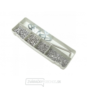 Súprava spotrebného materiálu na opravu preliačin na hliníkových karosériách pomocou bodových nástrojov a prípravkov.