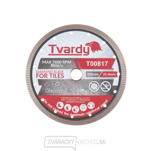 Profesionálny diamantový kotúč na kameninu značky Tvardy. Kotúč má drážkovaný okraj s uzavretým profilom a je určený na rezanie tvrdých materiálov ako je porcelánová kamenina, mramor, strešné tašky, žula, pieskovec, kremeň. Diamantový kotúč s priemerom 200 mm a hrúbkou 1,4 mm . Má diamantovú zrnitosť 10 mm vysokú a 1,8 mm silnú.