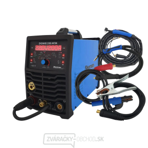 Synergický zvárací stroj DIGIMIG 200 MTM je zariadenie na ručné zváranie ocele a neželezných kovov metódami MIG/MAG, MMA (obalená elektróda) a TIG HF . Zariadenie je zamerané na profesionálov, ktorí oceňujú vysokú kvalitu a spoľahlivosť. Je možné ho tiež použiť na spájkovanie tenkých (do 3 mm) pozinkovaných plechov. Digitálne ovládanie umožňuje plné nastavenie parametrov, dynamiky oblúka, charakteristík a manuálneho alebo synergického prevádzkového režimu MIG/MAG. Využitie synergického nastavenia pre bežnú oceľ, nerez a hliníkové zliatiny vo zváracom stroji výrazne zjednodušuje jeho obsluhu a umožňuje jeho použitie aj osobám s menšími skúsenosťami a domácim majstrom. Pri zváraní metódou MMA môžete upraviť funkcie HOT START a ARC FORCE a vypnúť VRD. Zváračka umožňuje používať niekoľko prevádzkových režimov vrátane možnosti bodového zvárania . Zariadenie má pamäť posledného nastavenia , tj. po vypnutí a opätovnom zapnutí sa obnovia naposledy nastavené parametre. Je tiež možné uložiť 10 sád nastavení s ľahkým prístupom do režimu ukladania/prehrávania programu.