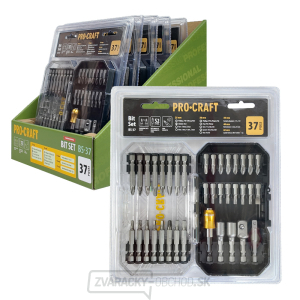 37dielna sada bitov Procraft BS-37 16 ks 25mm bitov: Phillips: PH1, PH2x6, PH, Ploche: SL6, Torx: T20x2, T25x2, Imbus: 3mm, 4mm, 5mm 16 ks 50mm bitov: Phil Pozícia: PZ1, PZ2x2, Torx: T15, T20, T25, Square: SQ1, SQ2, SQ3, Imbus: H4, H537dielna sada bitov Procraft BS-37