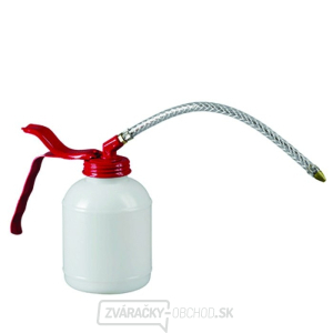 Štandardná olejnička s plastovou nádobkou HDPE (odolný polyetylén) a pružným transparentným výtokovým nástavcom dl. 210 mm (01 130). Má jednočinné umelohmotné čerpadlo, umožňujúce dávkovanie po kvapkách. Objem 350 ml.