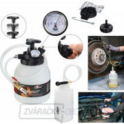 Sada na odvzdušňovanie brzdových a spojkových systémov s ručnou pumpou, tlakomerom, nádržkou 3 l, Euro-adaptérom, univerzálnym adaptérom s reťazou, hadicou a záchytnou nádobou.