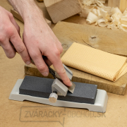Týmto úchopom posúvajte rovnomernými pohybmi čepeľ po celom povrchu kameňa zhruba 30x. Na povrchu kameňa sa začne tvoriť tekutina podobná kaši - túto tekutinu pri medzibrúsení nestierajte, pretože zvyšuje efektivitu brúsneho procesu. Pokiaľ kameň začne počas brúsenia vysychať, potrite ho opätovne malým množstvom vody.