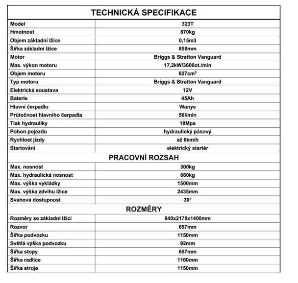 Mininakladač pásový BG323T je jednoduchý na ovládanie, nenáročný na údržbu, dá sa pohodlne prevážať na prívesnom vozíku alebo v dodávke. Vďaka skvelému pomeru cena/výkon je veľmi obľúbený u domácich majstrov a svojpomocných stavebníkov, nezriedka však po ňom siahnu aj profesionáli.