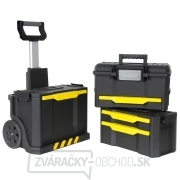 Rozkladacie pojazdný box Stanley Rolling workshop 1-79-206, samostatne prenositeľný box aj zásuvky. Horná 19 "box má jednu zásuvku, je uzamykateľný. Prostredný diel sa skladá z plytké a hlboké zásuvky. Spodný diel poskytuje dostatočný priestor napr. Pre elektro náradia. U zásuviek sú použité guličkové ložiská. Odolná hliníková teleskopická rukoväť umožňuje nastavenie do niekoľkých výšok. Veľmi odolná 7 "kolieska uľahčujú priechod terénom.