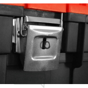 Profesionálne box na náradie z vysoko kvalitného, odolného polykarbonátu s kovovými uzatváracími klipmi, s alumíniovým sklopným držadlom as vyberateľnou vaničkou.