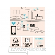 Frekvencia RF signálu: 433.92 MHz (pre komunikáciu Wi-Fi zásuvky s ďalšími diaľkovo ovládanými zariadeniami radu Extol® Light)