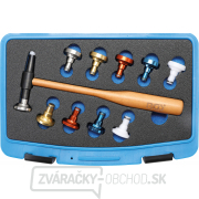 Kvalitná drevená rukoväť z orechovca. Súprava obsahuje: 3 vyklepávacie paličky 4 prípravky na opravu karosérie T ...