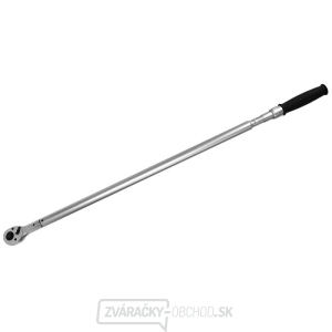 Veľký momentový kľúč priemyselnej kvality 3/4 "pre uťahovanie skrutiek v rozsahu 150-800 Nm s presnosťou ± 3%, s prepínacie páčkou a mechanizmom rýchlej výmeny hlavíc (Quick Release). Hodnota uťahovacieho momentu sa nastavuje po uvoľnení objímky ľahko otáčaním rukoväte až do polohy, kedy požadovaná hodnota v Nm je nastavená na stupnici telesa kľúče, je to obdoba stupnica mikrometra. nastavený moment je fixovaný objímkou na konci rukoväte.