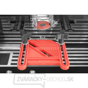 Konštrukcia: hliníková pracovná doska, bočné nástavce stola (dx š: 203 x 334 mm), oporný doraz s prípojkou odsávania, ochranný kryt ostria frézky, vodítka obrobku (3), uhlové pravítko, sada vložiek stola.